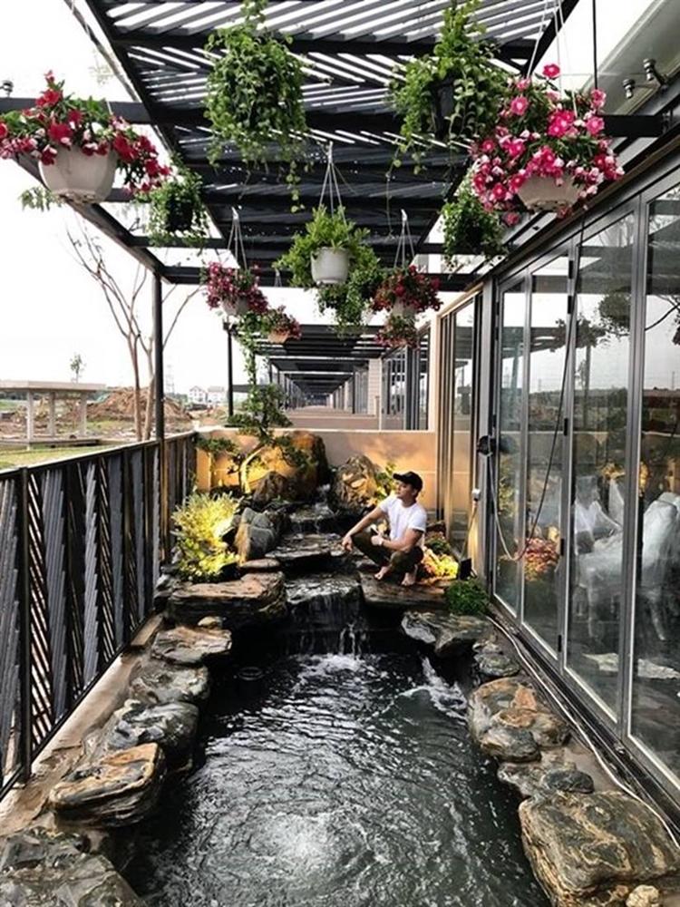 Ca sĩ Cao Thái Sơn khoe hòn non bộ và hồ cá vừa mới xây xong phía sau căn biệt thự sang trọng của mình.