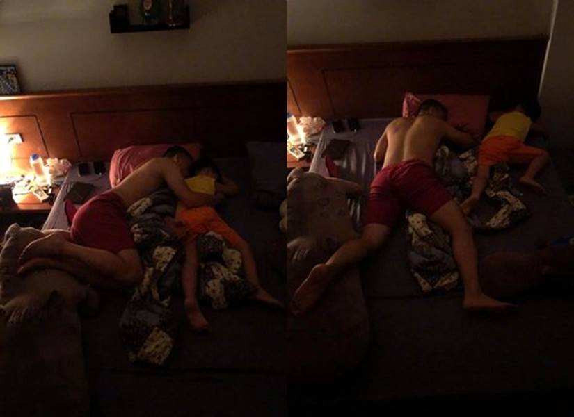 MC Hoàng Linh chia sẻ: "4h sáng tỉnh giấc... Trời vẫn mưa như trút. Nhìn '2 anh ấy' mà ngẫm: 'Bao nhiêu sóng gió của cuộc đời giờ có nghĩa lý gì trước những khoảnh khắc bình yên này!'. Linh cứ ngồi ngây người nhìn 2 anh, rồi nhìn xuống bên cạnh, một anh còn lại cũng đang ngáy ngon lành. Ông trời thật sự rất công bằng Linh ạ! Kế hoạch sắp tới là đóng giường tầng cho 2 bạn hoặc không thì sẽ là 1 phòng ngủ lớn hơn cho cả 4 anh em mình anh nhé!".