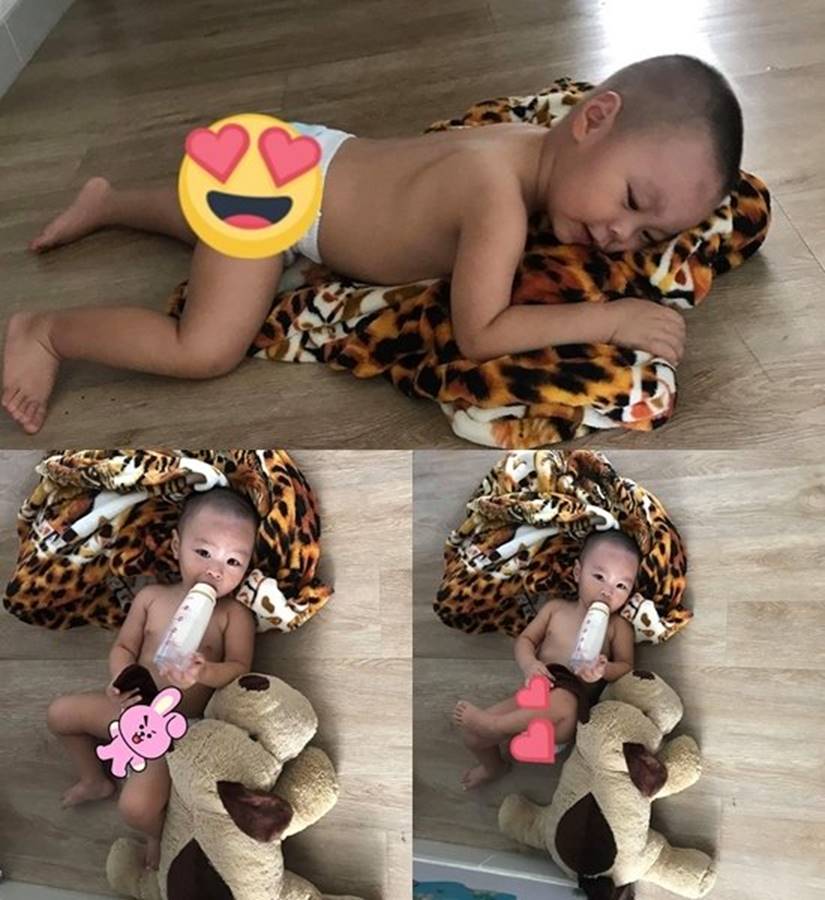 Quốc Nghiệp khoe hình ảnh của con trai Hùng Tâm đang bú bình sữa. Anh viết: "Trưa trời trưa trật thế này rồi mà không chịu ngủ. Chỉ thích nằm phè phởn bú bình sữa vậy thôi nè. Pà Pá, Mà Má chỉ biết bó tay... Mà nhìn tướng nằm của con như vậy thì giống 'đại gia' chưa mọi người".