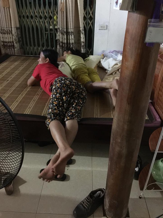 “Em đang rất khó xử các mẹ ạ. Hai người nằm trên giường kia là mẹ con nhà bà hàng xóm sang xem tivi nhà em, mà cứ sang là leo lên giường nằm như vậy đó.