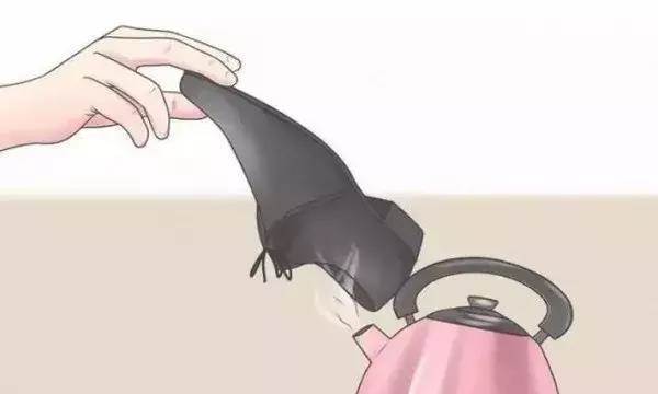 Tương tự như cơ chế giãn nở vì nhiệt ở cách dùng máy sấy tóc, mẹo này cần bạn đun sôi 1 ấm nước, sau đó đặt phần giày bị chật ở miệng ấm khoảng 3-5 phút để hơi nóng từ nước đun sôi tác động làm cho giày giãn rộng ra thêm.