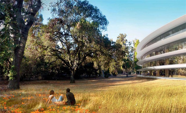Nét độc đáo: Trước sự thành công của mô hình "phi thuyền" Campus xây dựng vào năm 2011, Apple quyết định phát triển thêm một trụ sở khác, tạm gọi tên là Campus 2 với kích thước thậm chí rộng hơn, và được trang bị nhiều công nghệ độc đáo. Trái ngược với cái tên mang đậm chất công nghệ, "phi thuyền" lại sở hữu số lượng cây xanh cực lớn, cũng như nằm hoàn toàn trong khuôn viên của một khu rừng nhân tạo khổng lồ. Bên cạnh việc sử dụng 100% năng lượng tái chế từ pin mặt trời và nhiên liệu sinh học, Apple cũng áp dụng mô hình nước tái chế để giữ hệ thực vật luôn tươi tốt.