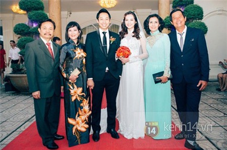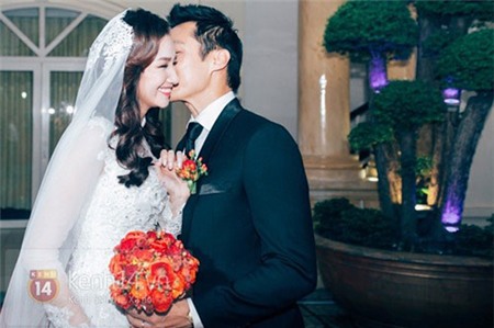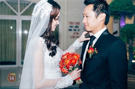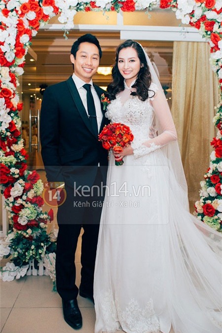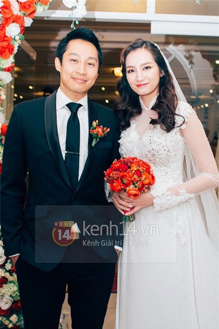 chú rể John Từ bảnh bao trong bộ vest thanh lịch. Cả hai khá vui vẻ và