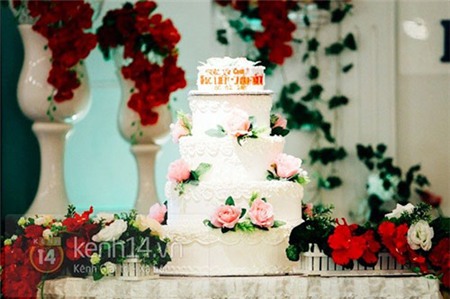Bánh kem 5 tầng trong tiệc cưới của Trúc Diễm |