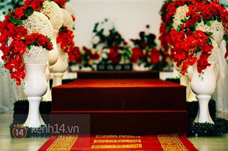 khấu cũng trang trí khá đơn giản với những đóa hoa màu đỏ.