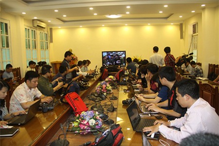 Các phóng viên tác nghiệp tại phiên tòa. Ảnh: Bảo Thắng |