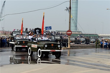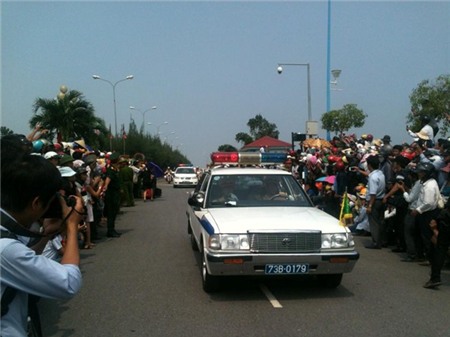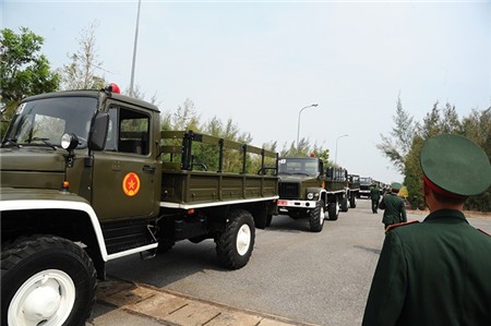 - Linh xa Đại tướng đã chuyển bánh ra khỏi sân bay Đồng Hới, tiến về quốc lộ 1A. Ảnh: Phạm Hòa.