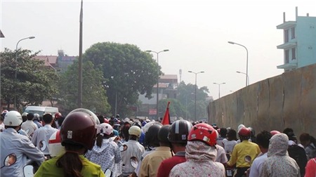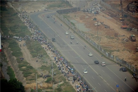 Dòng người đi theo Linh cữu ra sân bay Nội Bài rất đông, khiến tắc đường hơn 3km