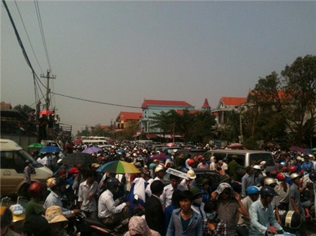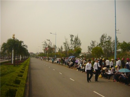 - "Tại sân bay Đồng Hới vào thời điểm này đã có hàng nghìn người dân đứng chờ đón linh cữu Đại tượng. Người dân cũng đã xếp hai bên đường Quốc lộ 1A", PV Phạm Hòa cho hay