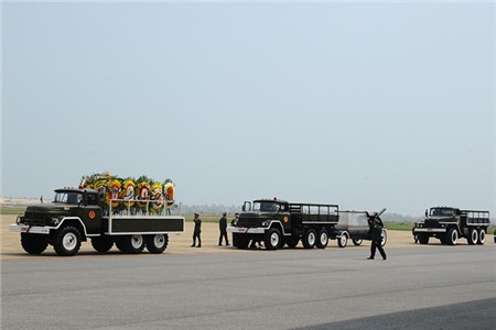 Tại sân bay Đồng Hới, công tác chuẩn bị đã hoàn tất. Đội tiêu binh và phương tiện rước linh cữu của Đại tướng đã tập trung theo đội hình tại khu vực phía trong của sân bay.