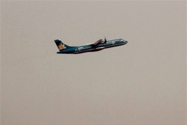 Chuyên cơ VN103 chở linh cữu Đại tướng đã cất cánh từ sân bay Nội Bài . Dự kiến sau 1 giờ 30 bay chuyên cơ sẽ hạ cánh xuống sân bay Đồng Hới lúc 12h trưa nay. Ảnh: Tuấn Mark.
