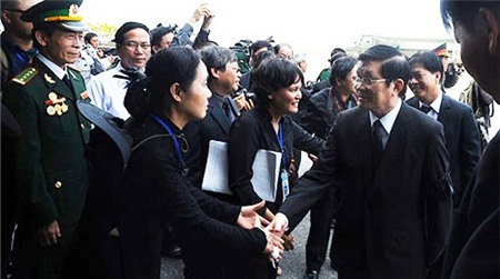 - Chuyên cơ mang số hiệu VN 1911, chở các lãnh đạo Đảng và Nhà nước, Quân đội, gia quyến và bạn bè đã về tới thành phố Đồng Hới.