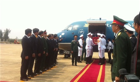 Chuyên cơ mang số hiệu VN103 chở linh cữu Đại tướng Võ Nguyên Giáp đã hạ cánh an toàn xuống sân bay Đồng Hới.