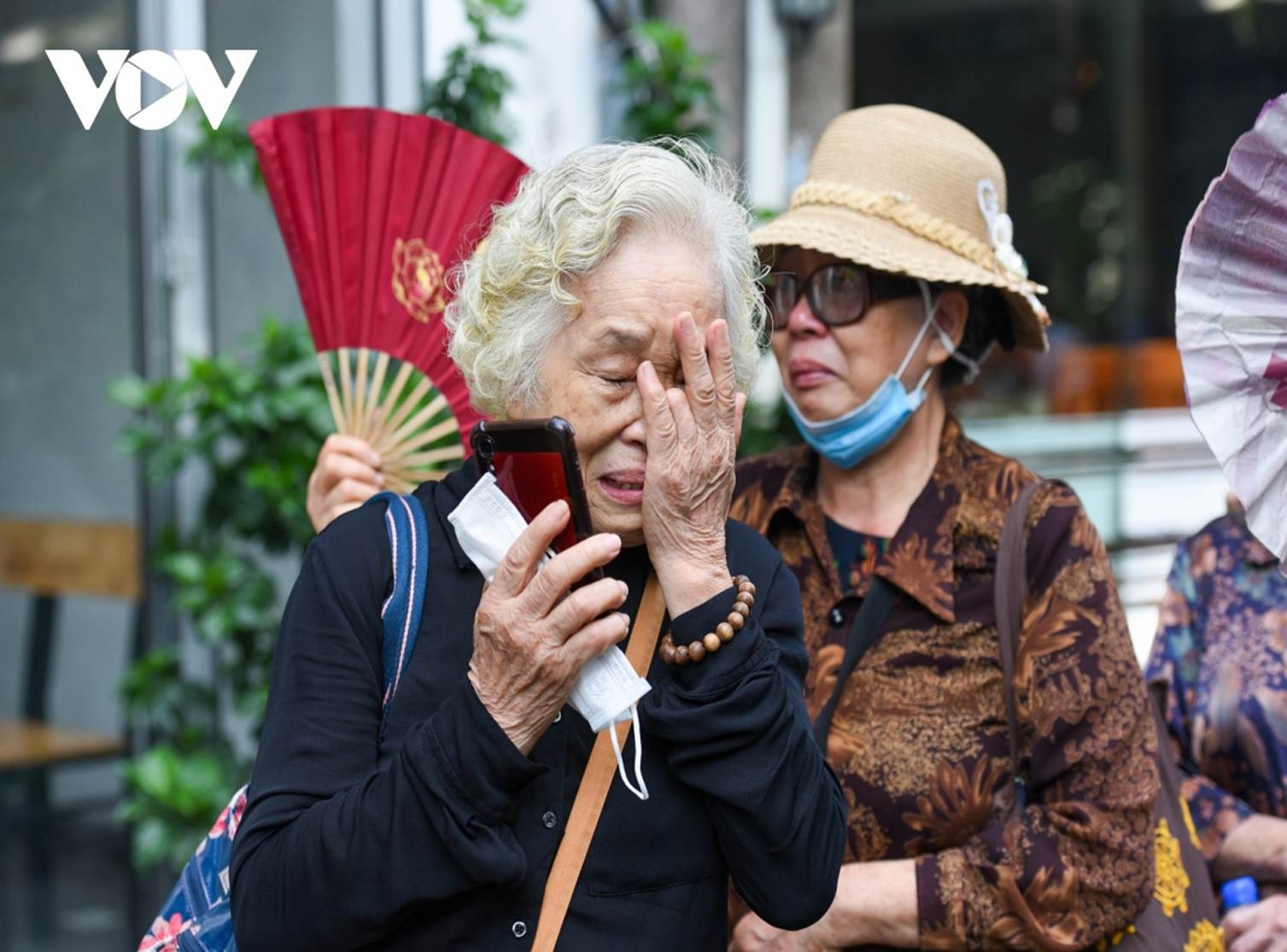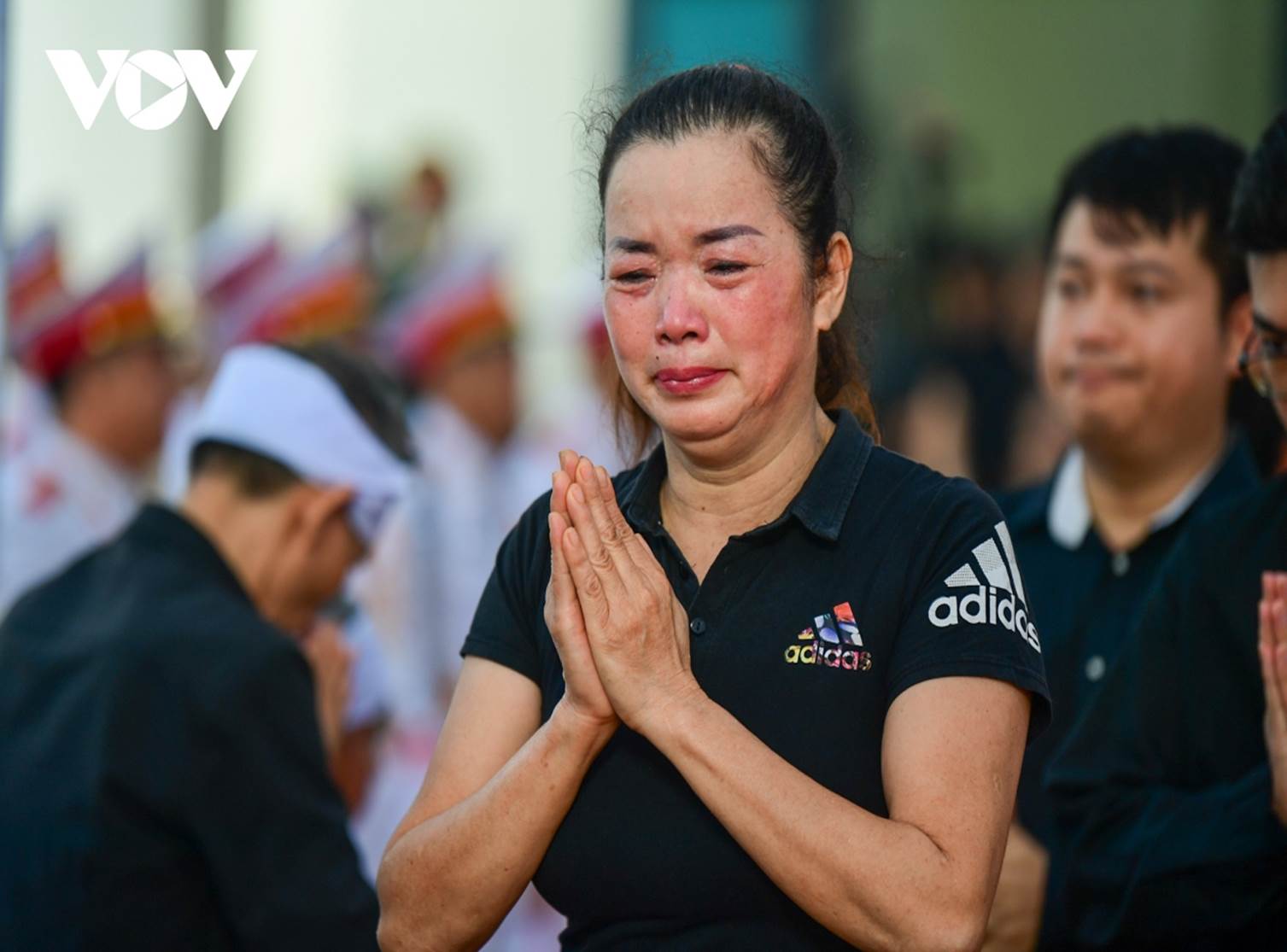 Chị Nguyễn Thị Hoa 44 tuổi, có mặt từ 6h xếp hàng đến viếng Tổng Bí thư Nguyễn Phú Trọng, chị xúc động khóc nấc không nói nên lời.