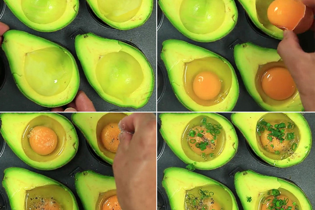 Đặt bơ vào một vị trí cố định (như khuôn làm bánh muffin, khuôn bánh khọt, một cái chén,...), rồi đập trứng vào lòng của quả bơ. Sau đó, rắc lần lượt: Một ít muối, một ít tiêu và một ít hành lá lên trên cùng.