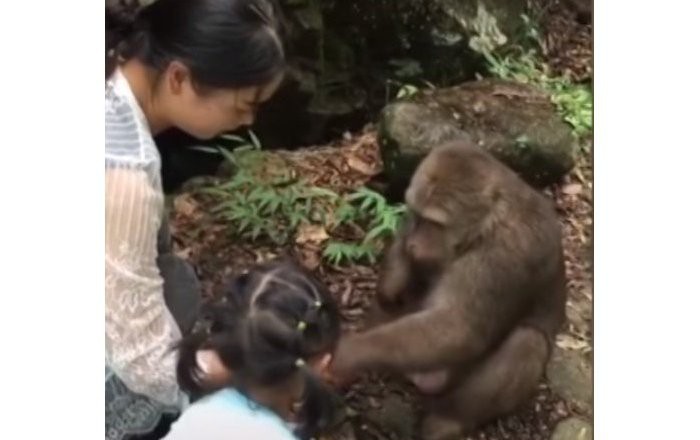 Được biết đoạn video này quay tại một vườn thú ở Trung Quốc, trong đó người phụ nữ và cô con gái khoảng 3 tuổi đang quỳ xuống bên cạnh một con khỉ để cho nó ăn. Mọi thứ diễn ra rất bình thường cho đến khi người mẹ rút thức ăn lại bỏ qua tay cô con gái. Con khỉ bỗng nhiên tức giận nên đã đấm thẳng vào mặt bé gái, khiến cô bé lăn ra sõng soài.