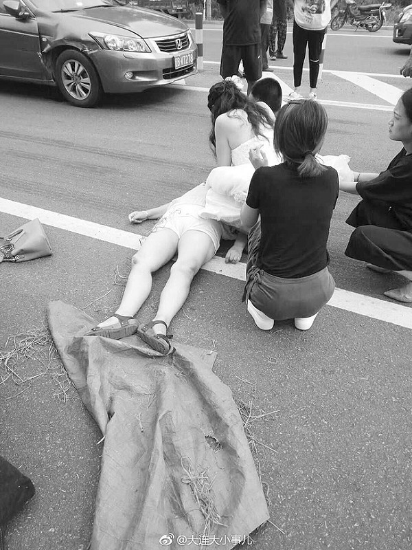 Vào ngày 18/8, tại thành phố Đại Liên (tỉnh Liêu Ninh, Trung Quốc), một y tá có tệ Tạ Đan đang chụp ảnh cưới với chú rể của mình ở khu vực Ngõa Phòng Điếm thì nhìn thấy một vụ va chạm rất mạnh, theo sau đó là một người phụ nữ lớn tuổi bị văng ra khỏi xe.
