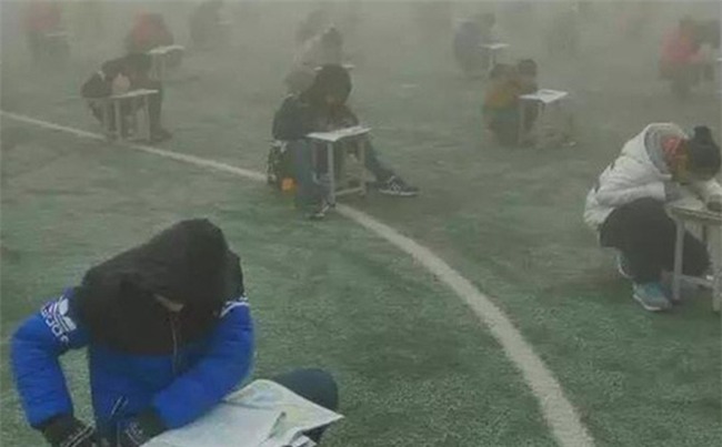 Một trường Trung học tại tỉnh Hà Nam, Trung Quốc đã khiến cho người dân nước này hết sức bất bình khi tổ chức cho học sinh làm bài kiểm tra ngoài sân trường trong điều kiện xấu: sương mù dày đặc, ô nhiễm không khí đã được nâng lên mức báo động đỏ.