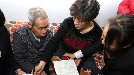 Đại diện tòa án Nội Mông trao quyết định xóa bản án cho gia đình Hugjiltu. |