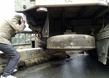 (Phòng CSGT Công an tỉnh Điện Biên) bị xe tải mất lái vì đường trơn