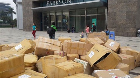 Hàng hóa ngổn ngang trước cửa Parkson. Ảnh: Ngọc Lan |