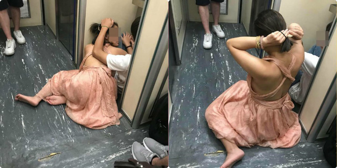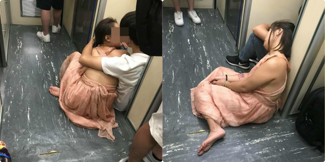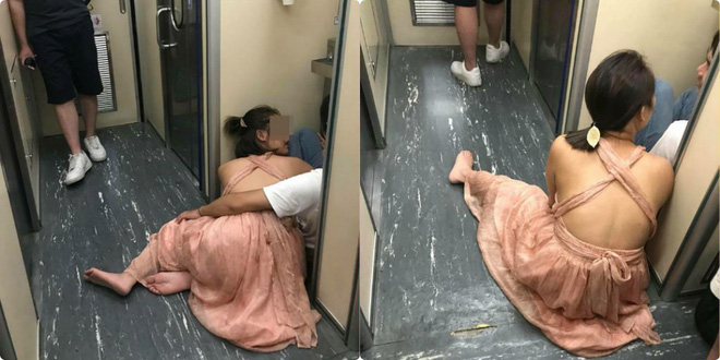 Đi kèm cùng bức hình chính là những bức ảnh về một đôi nam nữ được cho là người Việt Nam. Cô gái ăn mặc khá sexy táo bạo, cả hai cùng ngồi bệt trên sàn tàu điện ngay trước khu vực nhà vệ sinh. Họ thoải mái ôm ấp, ngồi chắn hết lối đi gây phiền hà cho các hành khách khác trên tàu.