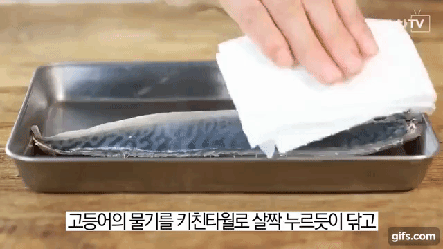 Chú ý là bạn phải dùng giấy thấm khô cả mặt trước và mặt sau của miếng cá nhé.