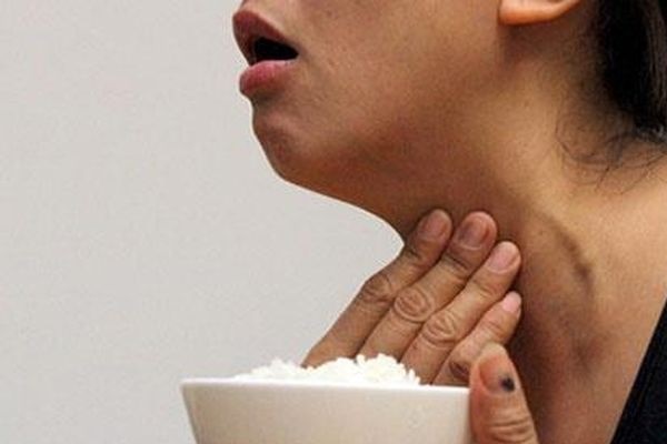 Đây là triệu chứng rõ rệt trước khi khởi phát xuất huyết não, bệnh nhân dễ bị sặc và ho khi uống nước. Ngoài ra, khàn giọng và khó nuốt thức ăn có thể xảy ra.
