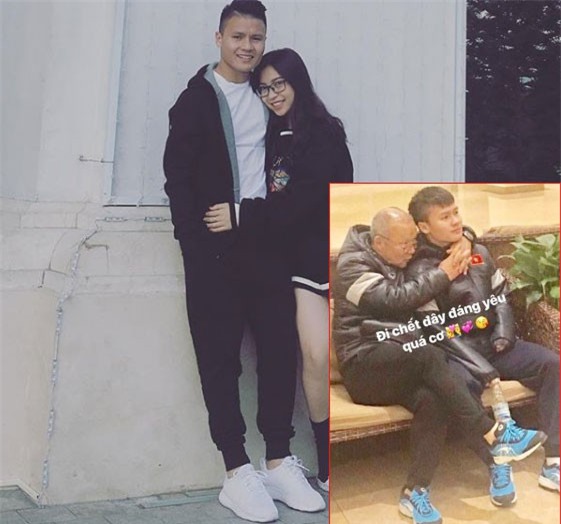 Khoảnh khắc của ông Park bên Quang Hải được Kim Lê (người yêu Quang Hải) đăng tải trên trang cá nhân kèm theo status hài hước.
