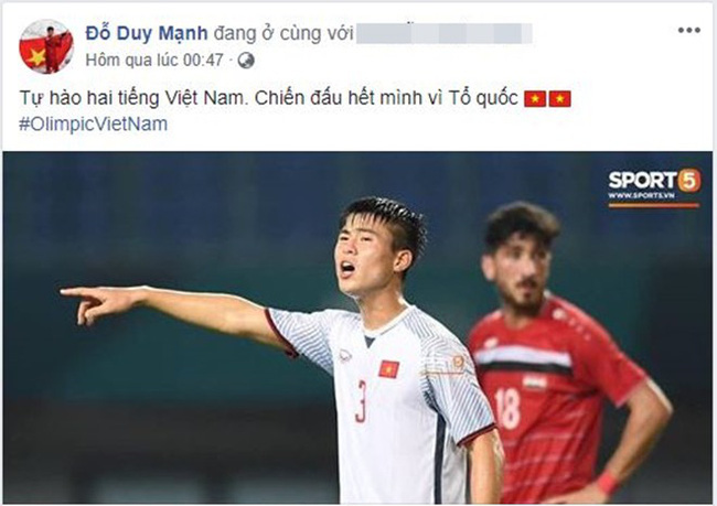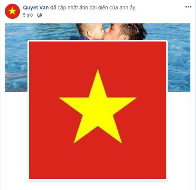 Đội trưởng Văn Quyết khá đơn giản. Anh chàng đến từ CLB Hà Nội này chỉ thay ảnh đại diện bằng hình cờ đỏ sao vàng nhưng hành động này lại có ý nghĩa động viên vô cùng lớn. Đó là màu cờ sắc áo, là niềm tự hào dân tộc mà mỗi cầu thủ đều cố gắng để bảo vệ.