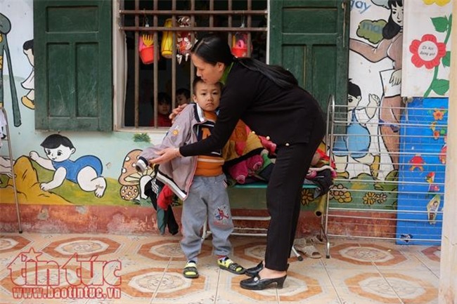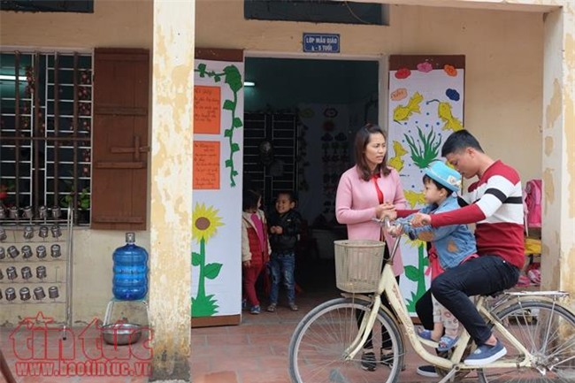 Khi trẻ ra về, các em phải ra ngoài hiên để cô giáo thay quần giữa giữa thời tiết lạnh. |