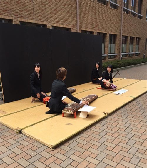 Sinh viên thoải mái chơi nhạc cụ giữa sân trường. Ảnh chụp tại ĐH Kinki, Nhật Bản. |