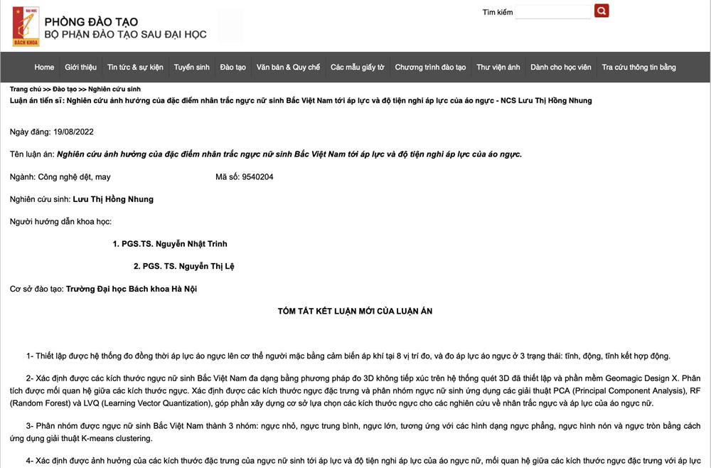 Luận án tiến sĩ về áo nịt ngực của nghiên cứu sinh Trường ĐH Bách khoa HN