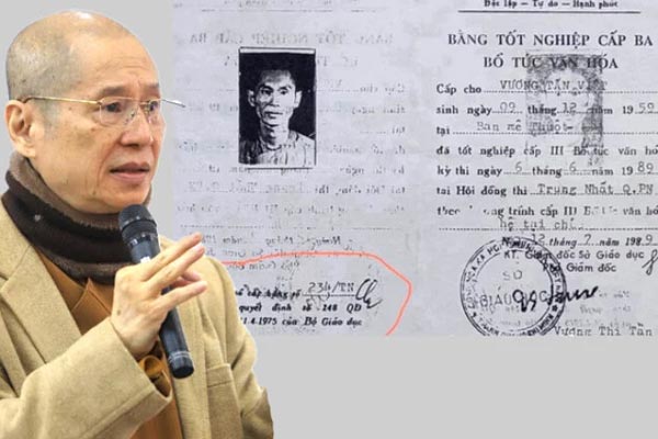 Trước đó, như VietNamNet đã đưa tin, Sở GD-ĐT TPHCM đã có công văn gửi Ban Tôn giáo Chính phủ về việc xác minh văn bằng tốt nghiệp cấp 3 bổ túc văn hóa của ông Vương Tấn Việt (thượng tọa Thích Chân Quang). Lãnh đạo Sở GD-ĐT TPHCM khẳng định, ông Vương Tấn Việt không có tên trong danh sách dự thi và bảng tên ghi điểm tốt nghiệp bổ túc văn hoá cấp 3.