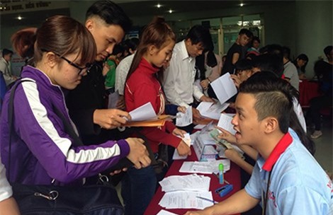 Trường ĐH Tôn Đức Thắng thực hiện việc tự phong GS, PGS được coi là việc làm mới mẽ của giáo dục Việt Nam. Trong ảnh: Thí sinh nộp hồ sơ xét tuyển vào ĐH Tôn Đức Thắng. Ảnh: P.ĐIỀN |