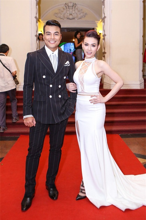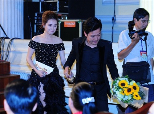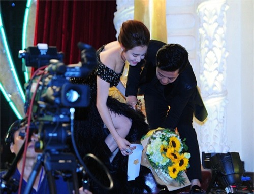Trường Giang hết mực quan tâm, chăm sóc cho bạn gái. Ngay khi cặp đôi vừa đặt chân xuống thảm đỏ, vì váy Nhã Phương quá dài nên danh hài liên tục phải giữ váy giúp cô không bị vướng chân.