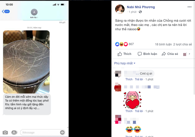 Tuy nhiên mới đây, Trường Giang đã lên phải tiếng than thở về cuộc sống hôn nhân, tiện thể nhắc nhẹ những ai đang có ý định lấy vợ. Cụ thể, nam diễn viên hài gửi những sợi tóc bạc đến Nhã Phương, kèm lời nhắn: "Cảm ơn đời mỗi sớm mai thức dậy, ta có thêm một đống tóc bạc phơ! Tấm hình này gửi đến những ai có ý định lấy vợ". Đáp lại ông xã, Nhã Phương chỉ biết cười trừ và phải đăng đàn hỏi "Các chị em nghĩ nên trả lời thế nào?" vì quá "cạn lời". Đoạn hội thoại này đã làm khán giả càng thêm ngưỡng mộ hôn nhân của cả hai, bởi lẽ sau 2 năm về chung một nhà, Trường Giang vẫn luôn yêu chiều, lo lắng cho nửa kia đến bạc cả tóc. Thôi thì âu cũng vì thương vợ con quá nhiều, hi sinh một vài cọng tóc có đáng là bao!