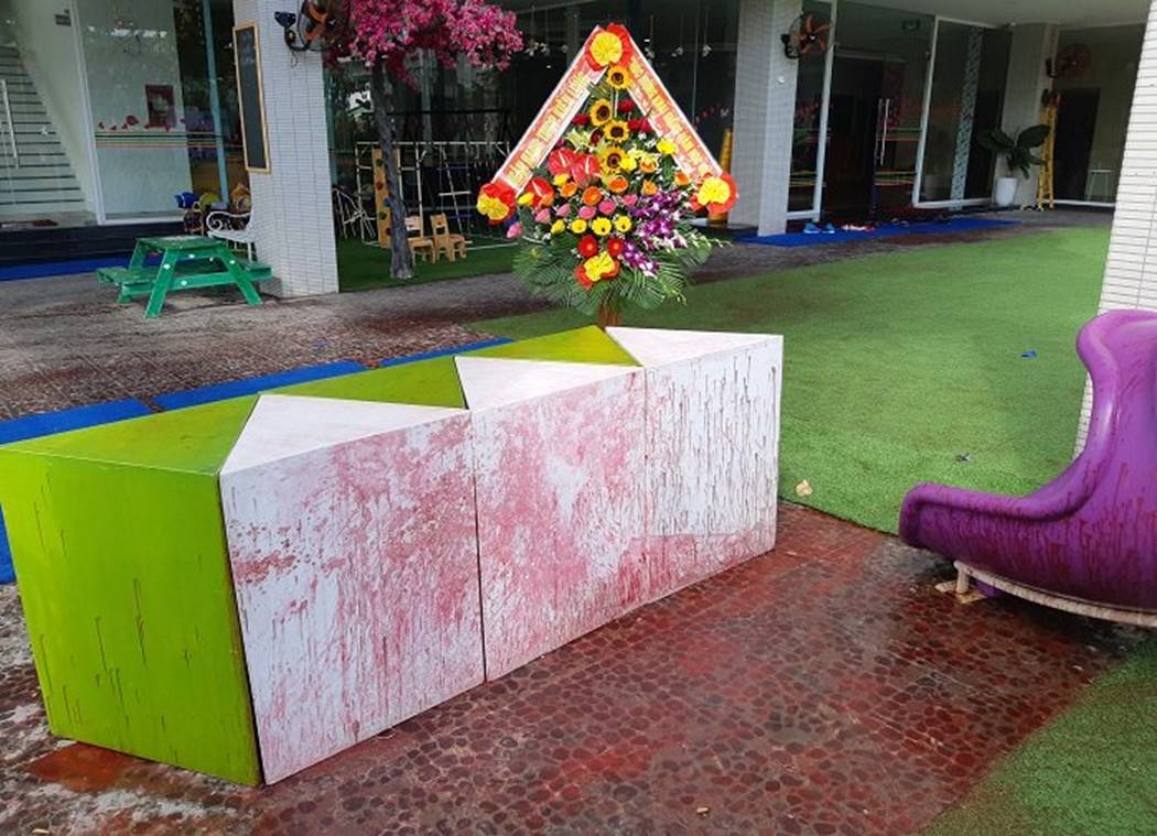 Khu vực bị ném chất bẩn là khuôn viên sân chơi của trẻ. Đây cũng là nơi tổ chức buổi lễ khai giảng năm học mới vào sáng cùng ngày.