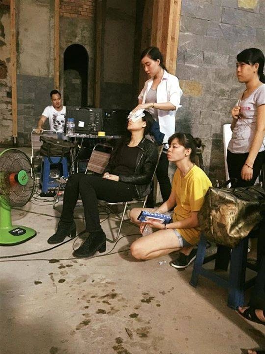 Cô liên tục chườm đá để mắt bớt sưng và tiếp tục những cảnh quay tiếp theo của mình.