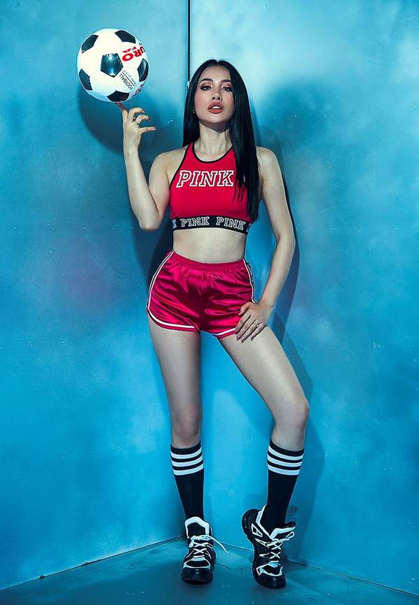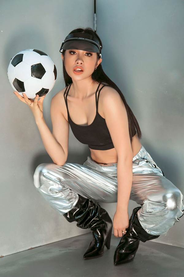 Trong bộ ảnh lần này, nữ diễn viên phát huy tối đa lợi thế hình thể nóng bỏng, sexy để hóa thân vào một cổ động viên cuồng nhiệt, máu lửa.