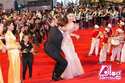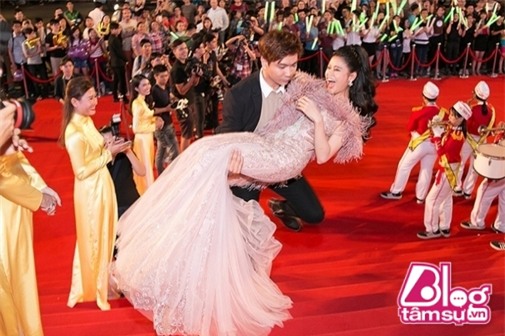Cách đây không lâu, trên một thảm đỏ danh giá, Trương Quỳnh Anh và Tim gây chú ý khi mặc trang phục sang trọng, lịch thiệp và có hành động rất đẹp mắt. Đó là lúc di chuyển trên bậc thang của thảm đỏ, Trương Quỳnh Anh gặp khó khăn vì váy quá dài và vướng, nguy cơ có thể vồ ếch bất cứ lúc nào. Ngay lúc khó khăn ấy, Tim đã ghi điểm khi bế bổng vợ trước mặt rất nhiều khách mời và phóng viên. Ngay lập tức hành động này được những người chứng kiến trầm trồ ngưỡng mộ và nhận được nhiều lời khen ngợi sau đó. Ai cũng phải nể sự khéo léo và tinh tế của nam ca sĩ này, vậy những ngôi sao khác như Trường Giang, Trấn Thành… sẽ phản ứng như thế nào khi vợ hay bạn gái gặp tình huống khóc dở mếu dở này?
