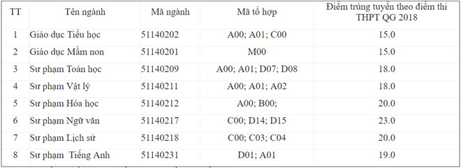 Đáng chú ý, thí sinh phải đạt 23 điểm trở lên mới trúng tuyển ngành Sư phạm Ngữ văn. Ngành Sư phạm Lịch sử, Sư phạm Hóa học cũng có điểm chuẩn 20.