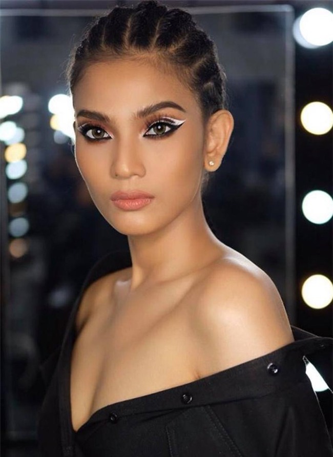Trương Thị May ấn tượng với cách kẻ mắt mới lạ, tôn được làn da nâu khỏe khoắn.