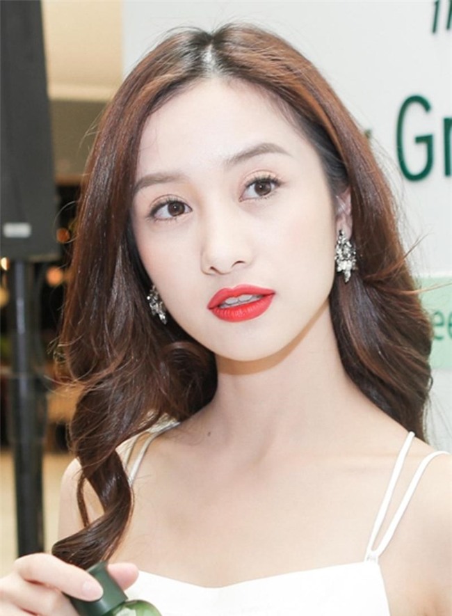 Ninh Dương Lan Ngọc trang điểm trong veo, mắt tròn to, son cam trẻ trung.