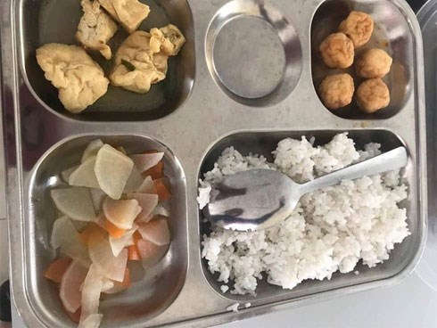 Suất cơm 20.000 đồng của học sinh tiểu học bị tố lèo tèo vài miếng đậu và cá viên đông lạnh, hiệu trưởng đưa ra lý do khó chấp nhận