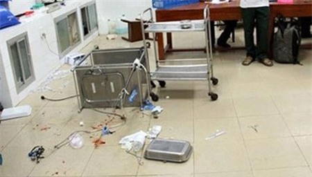 Dụng cụ y tế đỗ vỡ bên trong căn phòng xảy ra vụ truy sát |