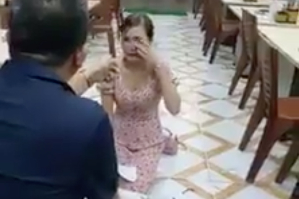 Chị H. bị bắt quỳ gối ở quán nướng Hiền Thiện.