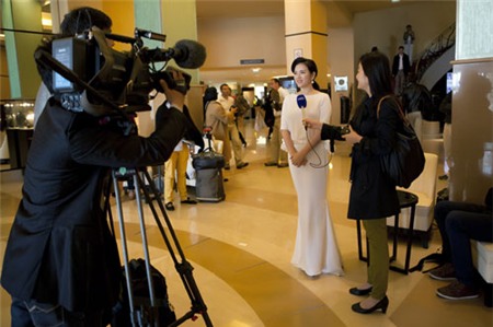 hình và phóng viên Hàn Quốc và Anh phỏng vấn. Họ đặt ra câu hỏi về cảm