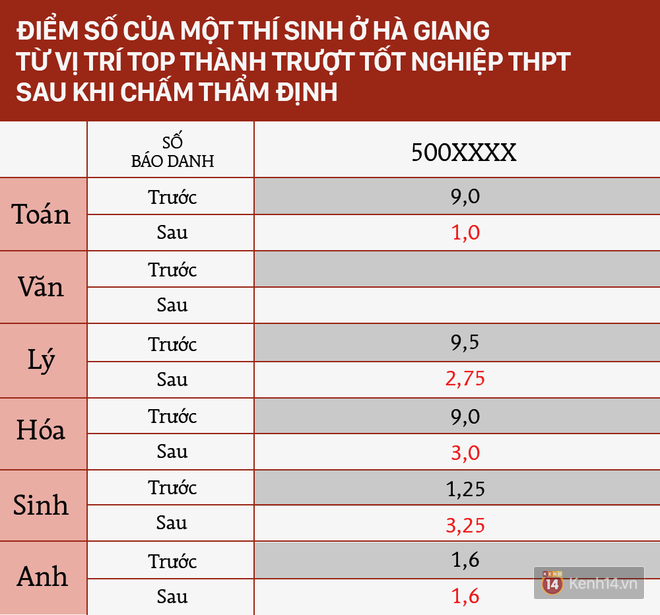 Sau quá trình chấm thẩm định, 3 thí sinh ở Hà Giang thuộc nhóm 11 người có điểm thi cao nhất nước đều bị giảm điểm. Bất ngờ hơn, một em khác trượt tốt nghiệp vì bị điểm liệt môn Toán.