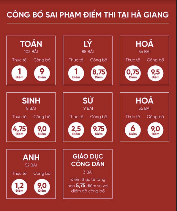Trước những bất thường về điểm thi THPT Quốc gia tại Hà Giang, tổ công tác Bộ Giáo dục đã trực tiếp ra soát, thẩm định lại toàn bộ và phát hiện có sai phạm trong việc chấm thi.